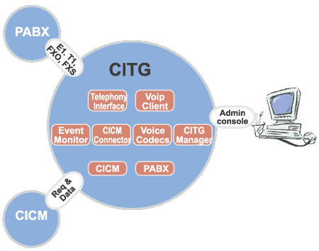 CITG是 CTMP Internet Telephony Gateway的略語,是NEXUS COMMUNITY公司開發的 VoIP Gateway的名稱,此模組提供用使用Internet網路Web呼叫中心服務後,建立與坐席之VoIP通訊,以使Web環境和Telephony環境之間完全整何合。