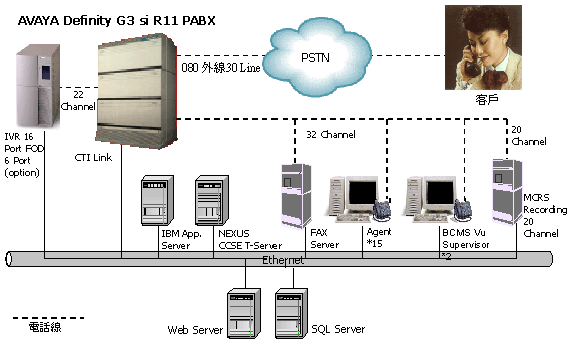 CTI 客服中心應用環境架構圖 / AVAYA Definity PBX(2)